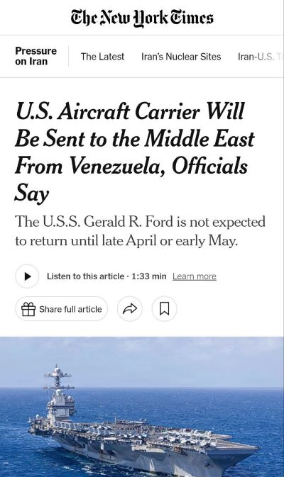 (2026-02-14). Trump says Iran regime change could be as second carrier heads to Middle East. haaretz.com