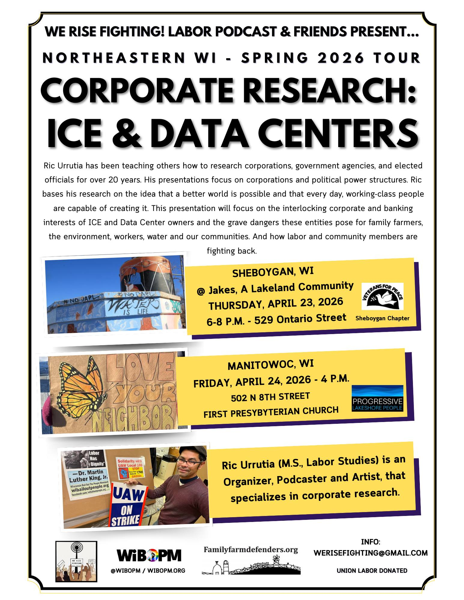 (2026-03-15). Sheboygan April 23 and Manitowoc April 24, 2026: ICE Data Centers Corporate Research! wibailoutpeople.org