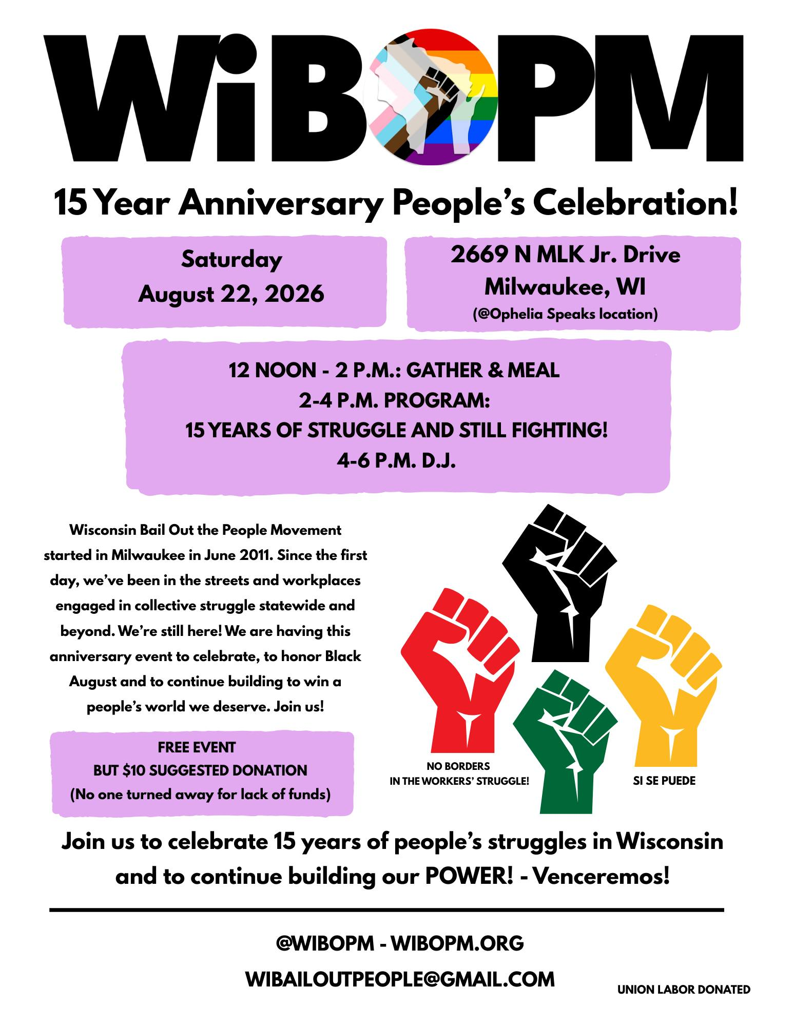 (2026-03-15). Milwaukee, August 22, 2026: Wisconsin Bail Out the People Movement's 15th Anniversary Celebration. wibailoutpeople.org