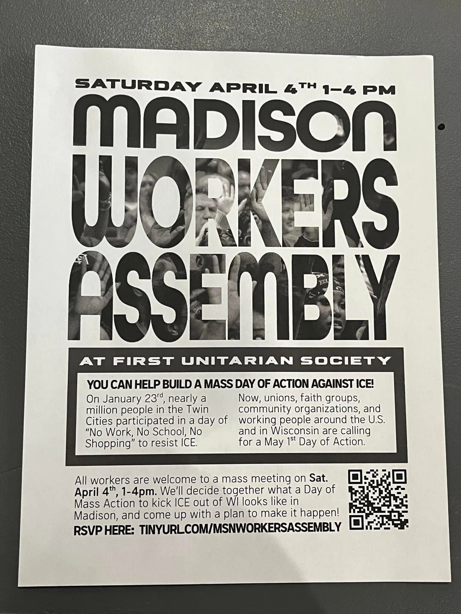 Facebook Event: www.facebook.com/share/1CoWZEwdz2/ A panel discussion with rank and file workers on the ground in Minneapolis MN fighting against ICE occupation, along with WIsconsin labor and community activists mobilizing for MAY 1st!Come hear first-hand accounts from Minneapolis rank and file labor activists on the ground about their fight against ICE occupation and organizing mass strike …